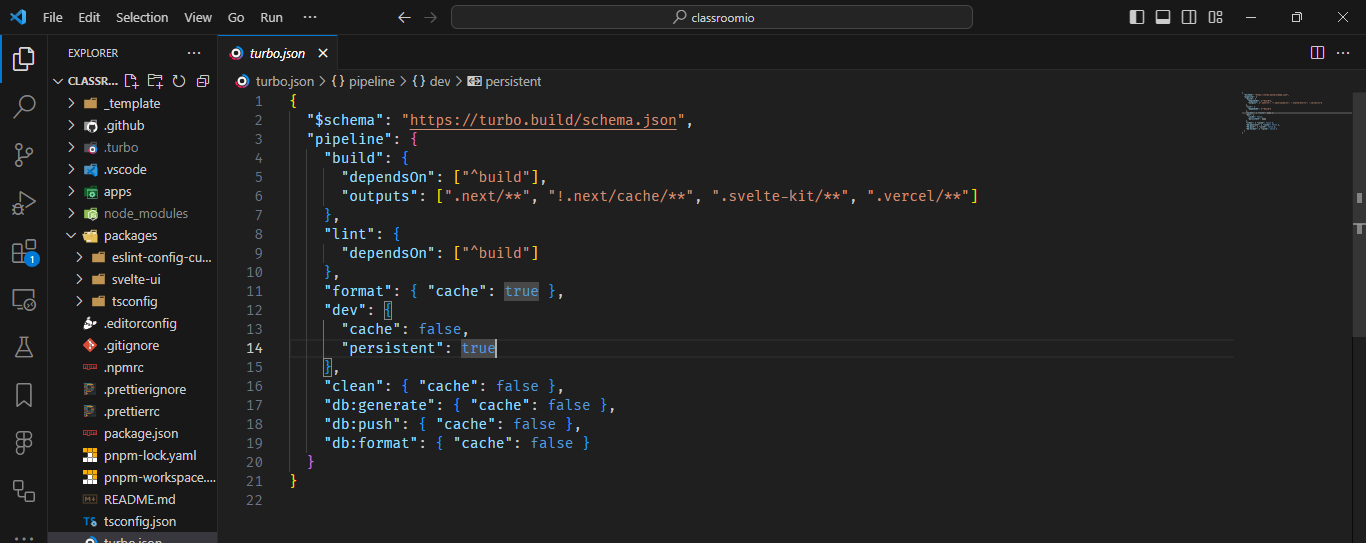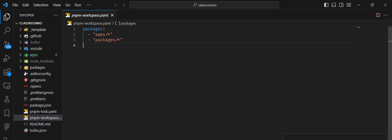 First, I had to set up a workspace inside classroomio repository using pnpm. The folder structure follows TurboRepo's walkthrough, so I did the following:
