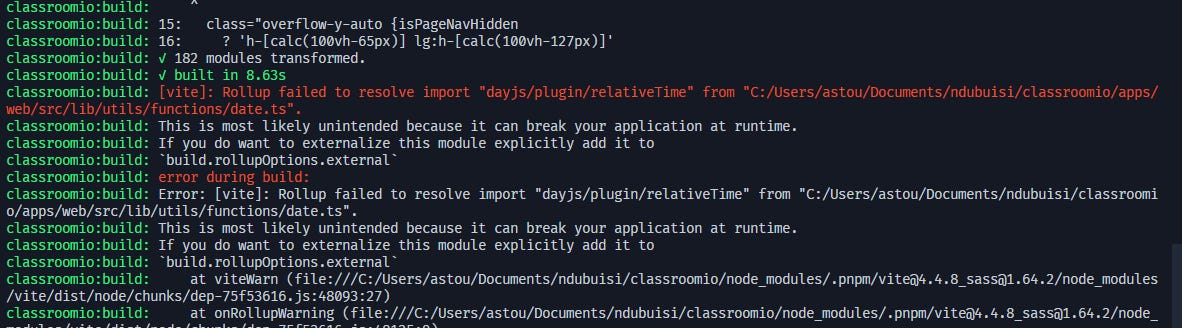 Debugging the issue with `dayjs` package wasn’t straightforward. I tried re-running `pnpm install` from the workspace’s root. The second step I tried that worked was